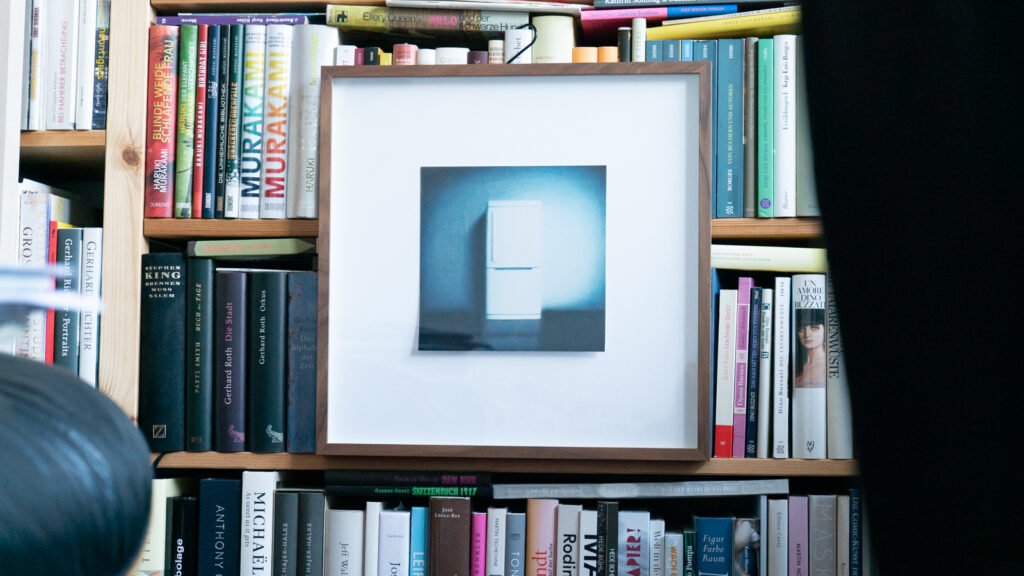 Für uns ist Steffen Kerns Kühlschrank ein Musterbeispiel dafür, wie es Kunst gelingen kann, alltäglichen Objekten – Betten, Lampen, Fernsehern, Badewannen, Hotel-Interieurs, Haus-Fassaden – berührende Unheimelichkeit einzuhauchen. E.T.A. Hoffmann sei Dank.