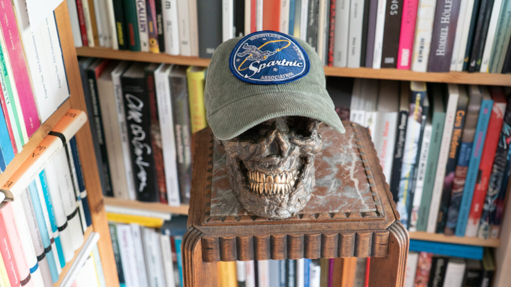 Oftmals blüht die Kunst im Unscheinbaren. Bei guter Street-Art ist das manchmal so. Oder bei dem oben gezeigten Aufnäher der „Weightless Artists Assoziation (SPARTNIK)“: eine Edition (für Freunde) des Düsseldorfer Künstlers David Fried, der die Vereinigung (für Freunde) erfunden hat. Es war ein Geschenk, die Mütze hat Gastro-Sammler Bloehme dahinternähen lassen.