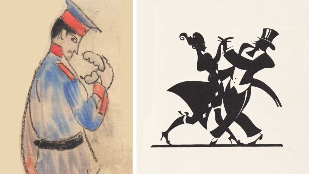 Ernst Moritz Engert, der 1913 an der vom Freund August Macke organisierten „Ausstellung Rheinischer Expressionisten“ im Bonner Kunstsalon Cohen teilnahm – und der die Welt einer Augenkrankheit wegen bis zur OP in den späten 1970er Jahren nur Schwarz-Weiß sah – geht in seinen Scherenschnitten einen bunteren, da humorvollen Weg.