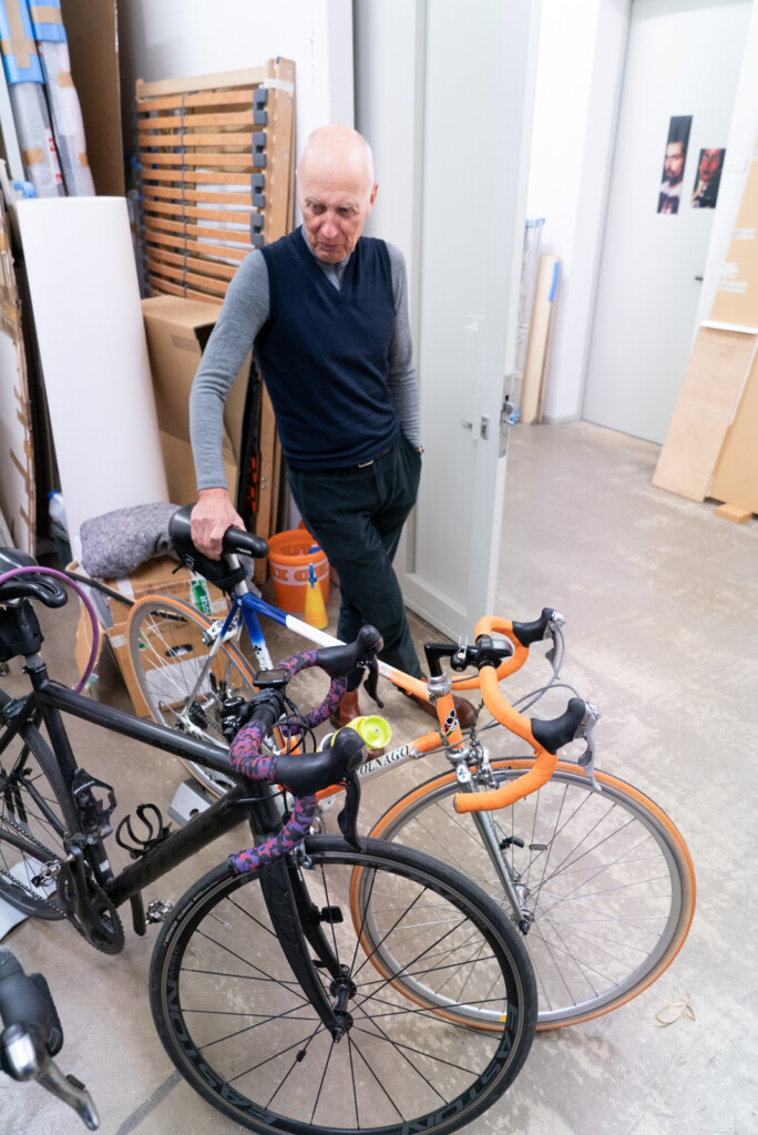 Foto oben: Axel Hütte mit einem Teil seiner Rennräder, Düsseldorf 2025