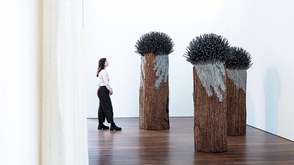 Wir schritten staunend durch einen kleinen Wald aus Totholz-Stämmen, die Ueckers Nagel-Kronen zum Blühen brachten.
