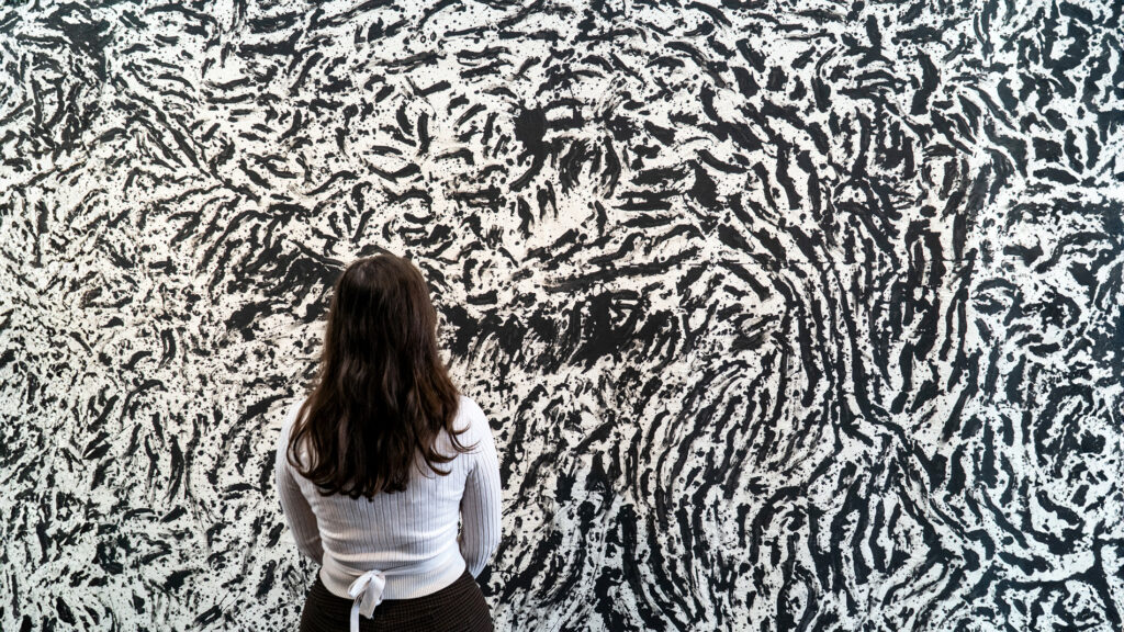 Vorm Aufzug, der zur Ausstellung nach oben in den Meier-Neubau führt, läuft der Schwarz-Weiß-Film „Die Treppe“, der die Aktion von damals dokumentiert und dabei zeigt, wie beeindruckend schnell & stilsicher Ueckers Inbesitznahme verlief.