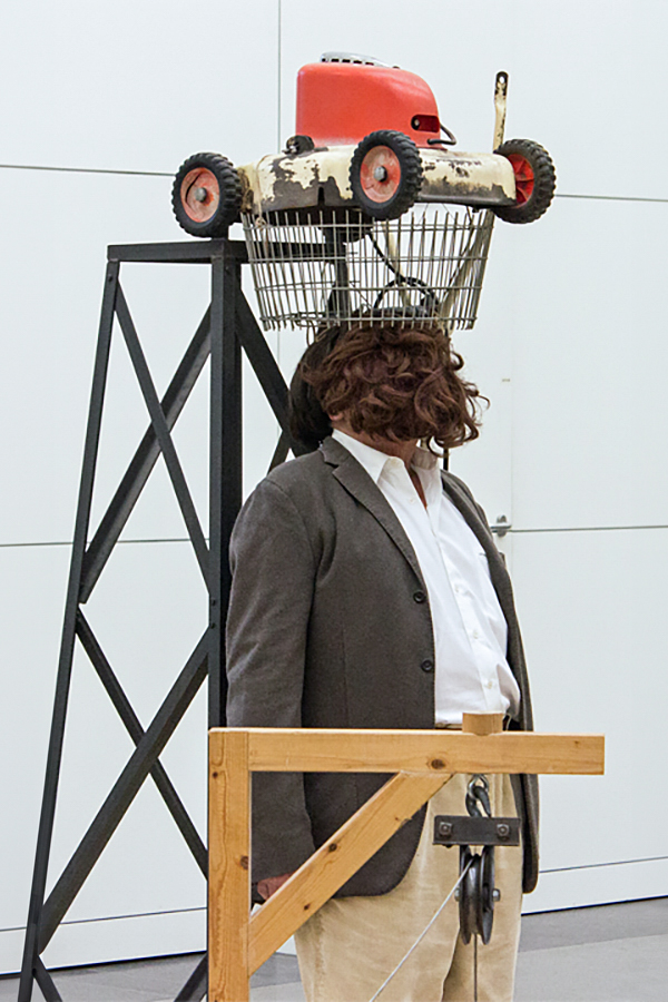 Für uns machte Guenther Uecker sich unterm Toupet einer übermannshohen Rasenmäher-Dame unsichtbar. Er spielte über Kopf die eher sanft gestimmte Massage-Schreibmaschine wie Mozart hinterrücks Klavier.