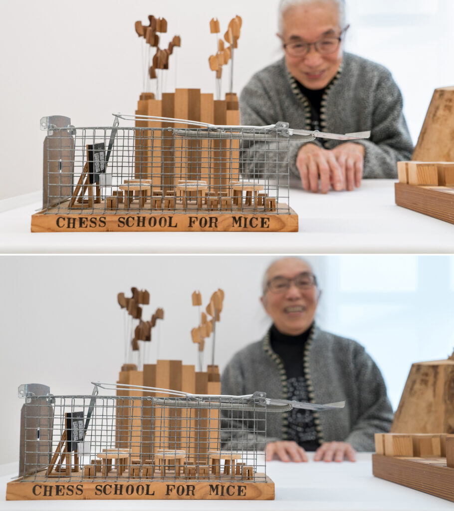Als wir Takako Saito 2017 im Museum für Gegenwartskunst (MGK) in Siegen zum ersten Mal sahen, stellte sie gerade eine Mausefalle samt integrierter Schach-Schule als Köder auf einen Ausstellungstisch.