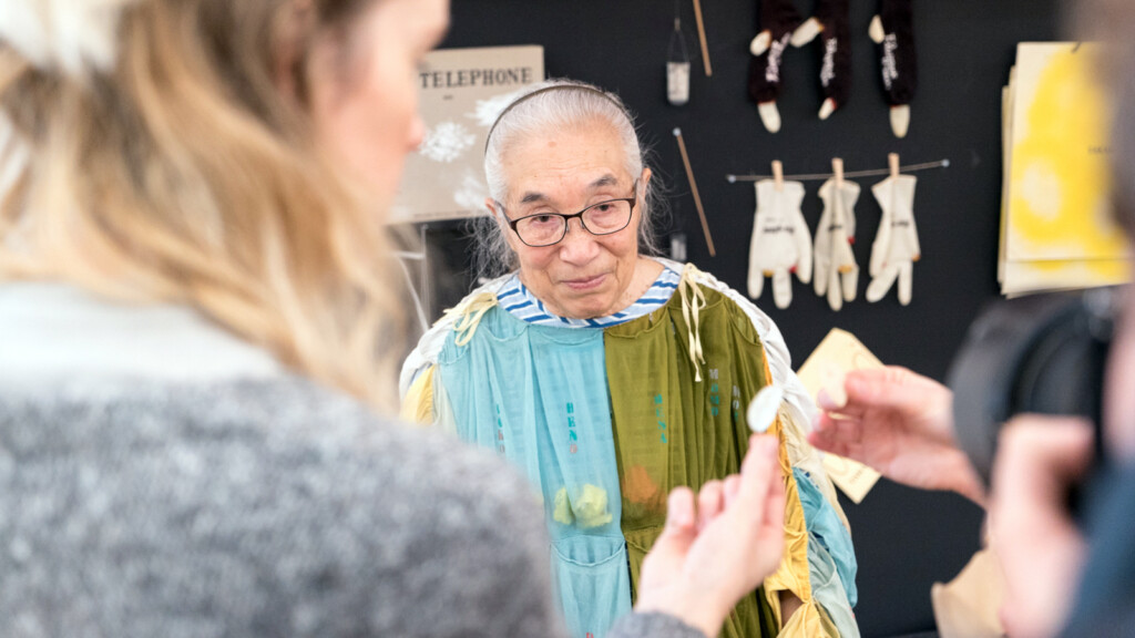 Gestern (30.09.2025) starb mit Takako Saito eine der letzten großen Fluxus-Künstlerinnen. Wir lernten sie leider erst mit 88 kennen und begegneten ihr nur sporadisch. Aber 2024 durften wir in ihr Wohn-Atelier in Düsseldorf. Wir sind sehr froh, dass dies dank hartnäckiger Fürsprecher noch möglich war.